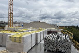 Na ul. Tytoniowej w Warszawie trwa budowa inwestycji Vista Wawer, którą realizujemy jako generalny wykonawca dla dewelopera GH Development. W ramach projektu powstanie czteropiętrowy budynek z garażem podziemnym i lokalami usługowymi na parterze. Obecnie kończymy konstrukcję żelbetową i roboty murowe. Stropodach jest w trakcie pokrywania blachą, a w tym czasie prowadzone są również prace nad instalacją wentylacji.